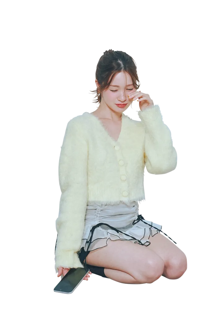 ニットカーでとショートパンツをあわせれば、王道あざとコーデの完成。ふわもこアイテムと肌見せの二刀流で彼の視線をゲットして♡