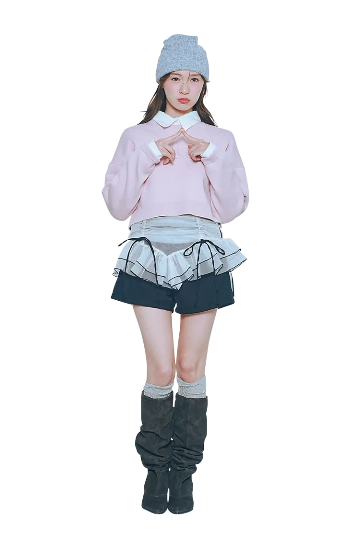 3. 冬の脚見せはぷりかわ女子の特権♡ チュールにときめく「リボンショートパンツ」着回し4選