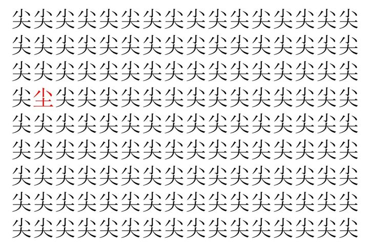2. 【脳トレ】「尖」の中に紛れて1つ違う文字がある!?あなたは何秒で探し出せるかな??【違う文字を探せ!】