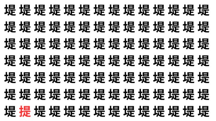 たくさんの「堤」の中に、よく似た別の漢字が1文字だけ隠れています。