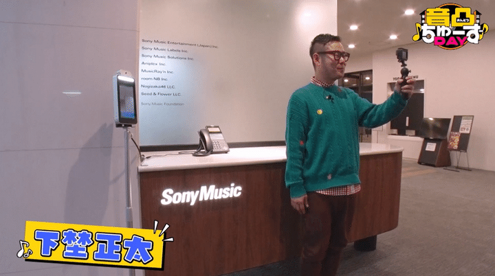 ソニーミュージックのビルを訪れた下埜は、カフェスペースで談笑中の緑黄色社会に凸撃!