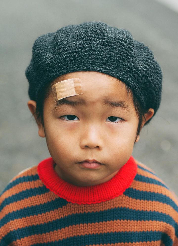 こなれ感あるグレーのベレー帽でお兄さん風に昇華! カラフルなボーダーニットをマイルドに仕上げてくれる。