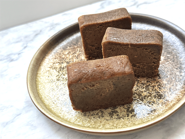 ずっしりと重みがあるショコラケーキ。冷蔵庫から取り出して10分ほどしてからナイフを入れましたが、しっかり硬さがありました。きれいにカットするには、ナイフを温めて一切れカットするごとにナイフを拭きながら切るのがポイントです。