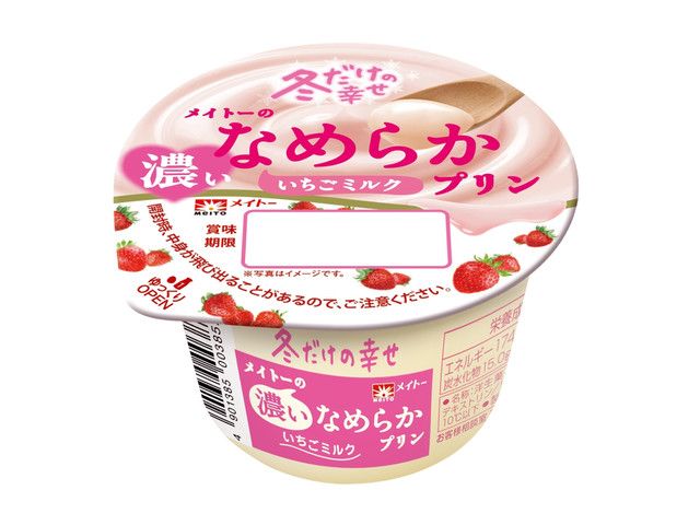 冬に旬を迎えるいちごを使った新商品。いちごの風味と、なめらかプリンの濃厚なミルク感を感じられる味わいです。 期間限定で生クリームを1.5倍配合しており、重厚でリッチな味わいをお楽しみいただけます。香り華やかな、いちごとミルクのハーモニーをお楽しみください。