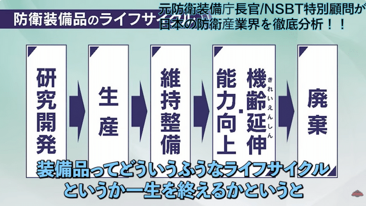 この「防衛力」とは何なのか? 土本氏は「人と物なんですよね。つまり自衛官と防衛装備品」だと話す。防衛装備品のライフサイクルは防衛産業がなければ成り立たず、防衛産業は「まさに自衛隊の対等なパートナー」であり「防衛力そのものである」と位置付けたと説明する。