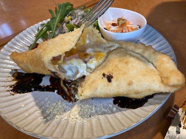 まかないランチ(ピッツアフリッタ~モルタデッラハムと卵のつつみ揚げ~)