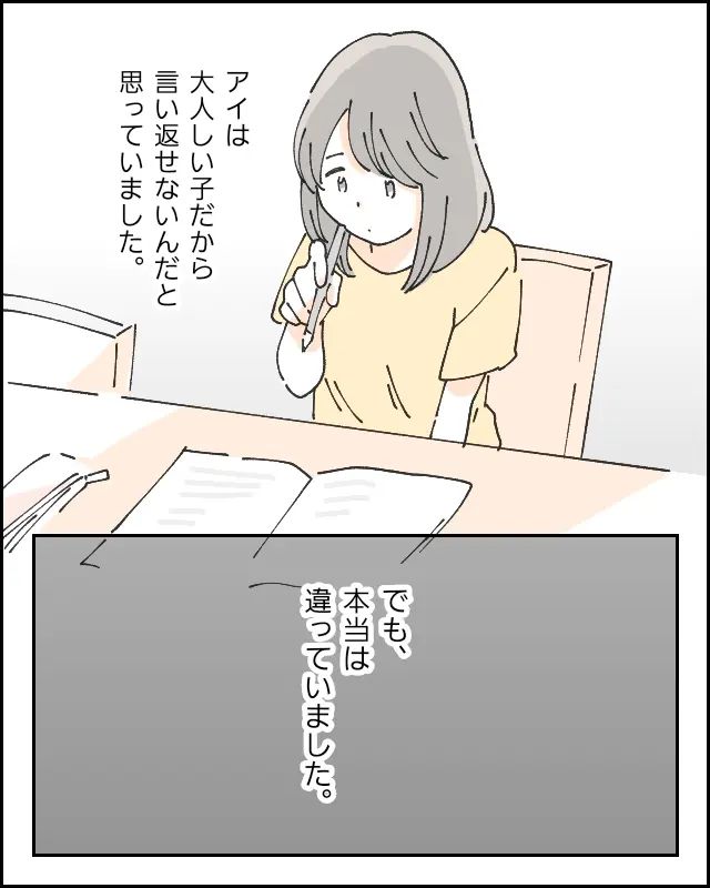 アイは大人しい子だから言い返せないんだと思っていたのです。でも、本当は違っていました。