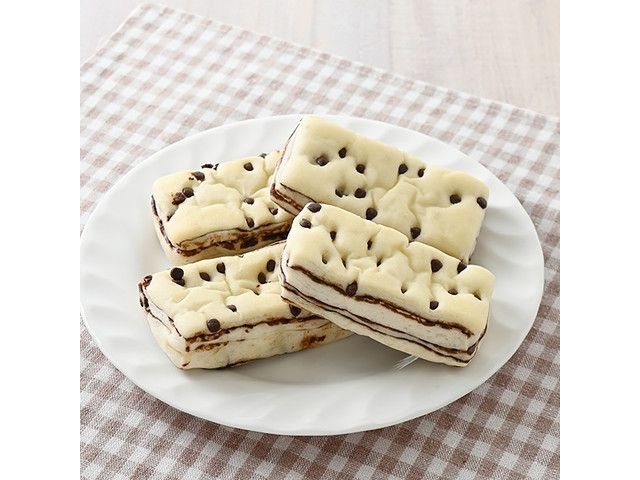 ふわふわもちっとした食感の生地に、チョコクリームとチョコチップを折り込んで焼き上げた、持ち歩きにぴったりの菓子パン4個入です。