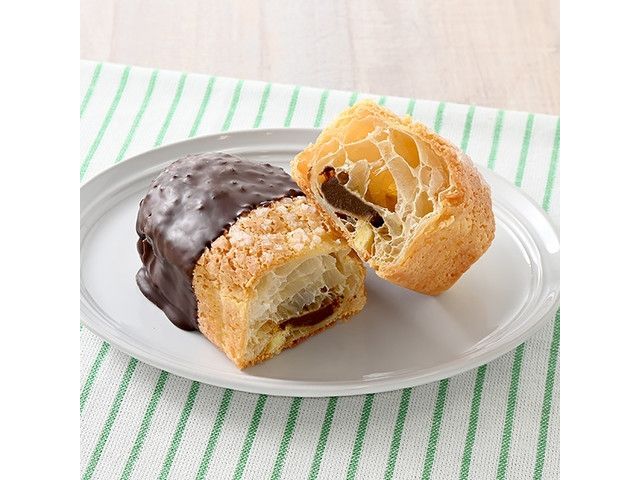食べやすいスティック状のバタークロワッサンメロンパンの中にチョコクリームを絞り焼き上げ、チョコをコーティングしました。
