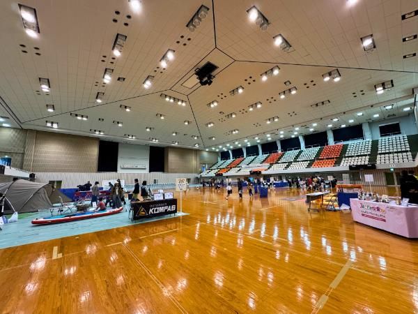 体育館の中では、ARやドローンなどの最新技術に触れたり、ボッチャやアウトドアギアに触れたりするイベントが開催されていました。