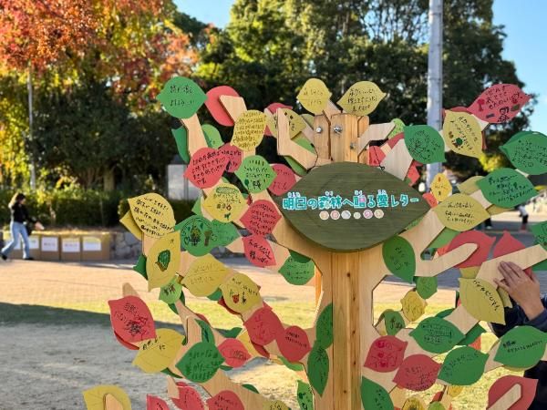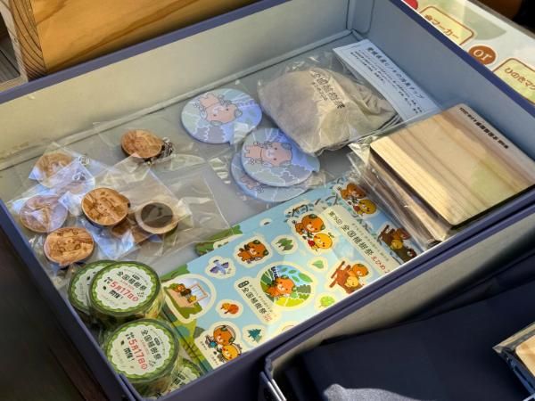 森林へメッセージを描くとガチャが回せて、記念品をいただくことができました。 記念品は木製モノが多く、私はコースターをゲットしましたよ。
