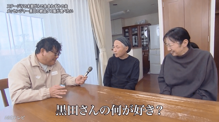 病気が発覚したときの心境について尋ねられ、「絶望や、自分が死ぬことへの恐怖はそんなになかったんですよ。ただ、嫁を置いていくことに対してどうしようということだけですね」と妻への思いを口にする夫。依頼者の「自分には薬を作れるわけでもないので、何もしてあげられないので、もどかしくて」と言う言葉からも、夫への愛情が伝わってくる。夫は「病気の件で、(嫁が)1回も泣いていないんですよ。それがすごくありがたいです。立場が逆だったらワンワン泣いていると思います」と笑顔を見せる。