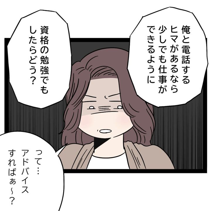 「俺と電話するヒマがあるなら、少しでも仕事ができるように資格の勉強でもしたらどう?ってアドバイスすればぁ~?」まさひでを睨みながら、私はあえて嫌味たっぷりに言いました。このくらい言わないと、まさひでには分からないでしょうから。
