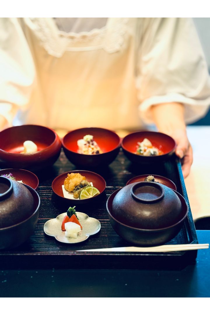 天ぷら・割烹の店「尾張 粋 稲葉」はユニークなスタイルの店で、天ぷらの方はランチとディナータイムの営業、対する割烹は朝食とディナータイムの営業を行う。朝食もいわゆる「ホテルの朝ごはん」的なものとは異なり、完全予約制で1名からでも席が取れる。この朝食がすごいのだ。先に体験した友人から「とにかくすごいから。ランチがお腹に入らなくなるから遅めスタートのブランチって考えるのもアリ」と聞いていたので、ありがたく教えに従うことにする。
