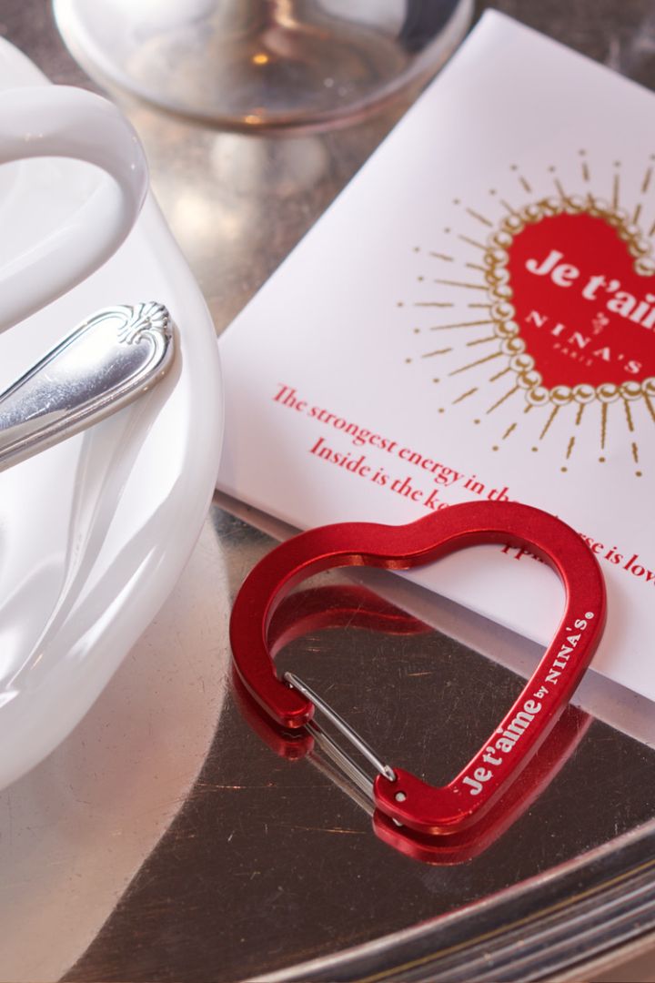 「ニナリス®・ロイヤル・ショコラ・ショー」は、おいしさだけにとどまらない。“The strongest energy in the universe is love. Inside is the key to happiness.(宇宙でもっとも偉大なのは愛。幸せの鍵は自分のなかにある)”と記されたハート柄の封筒には、フランス語で「愛してます」を意味する“Je t’aime”の文字が添えられた、赤いハート形のカラビナが収められている。さらに、同封のカードにも心に寄り添う愛のメッセージが記されていて、おなかだけでなく、心も温まるはず。