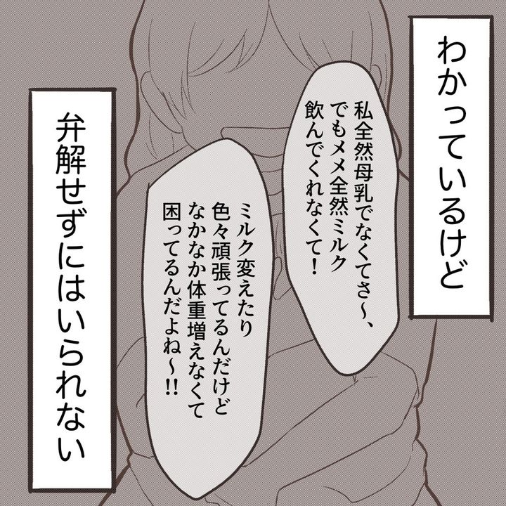 まろは、メメに怒鳴ったことを後悔します。メメがこのままミルクを飲まなくなったら…と思うと怖くて仕方ないのでした。また、自己嫌悪に陥り、虐待のニュースを見れば周りから自分が「育児放棄している」と思われるんじゃないかとおびえるように。