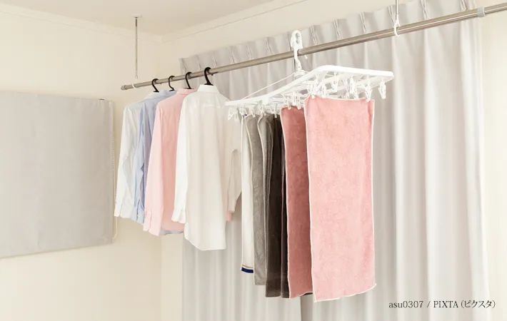 確実に乾かすためにも、秋冬は取り込んだ後、室内にしばらく干す『仕上げ干し』を習慣にすると安心です。