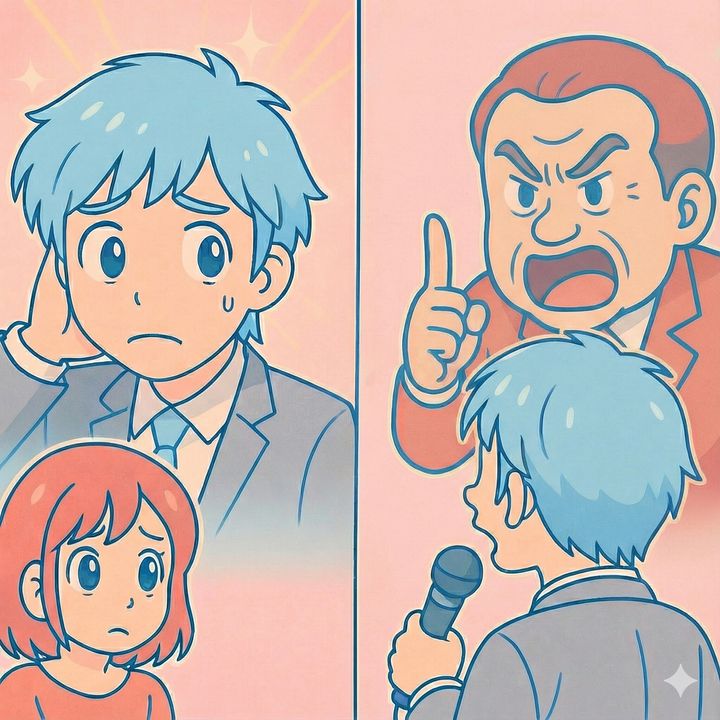 会場は一瞬戸惑いましたが、新人はプロ顔負けの表情と声色で、上司が普段から言っているパワハラ発言や、理不尽な指示を完璧に再現し始めました。