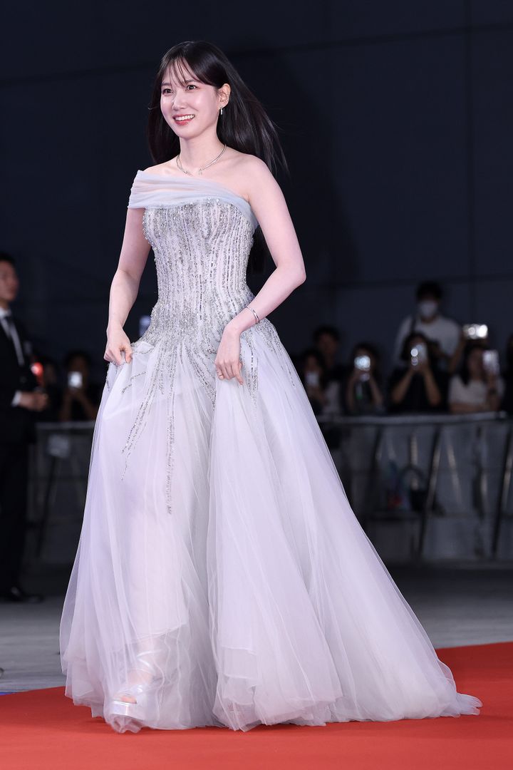 この日は、シルバーのシフォンドレスに身を包み、ジュエリーやシューズもシルバーで統一。笑顔いっぱいでフォトコールに登場した姿は妖精のようで、多くの人を魅了しました。