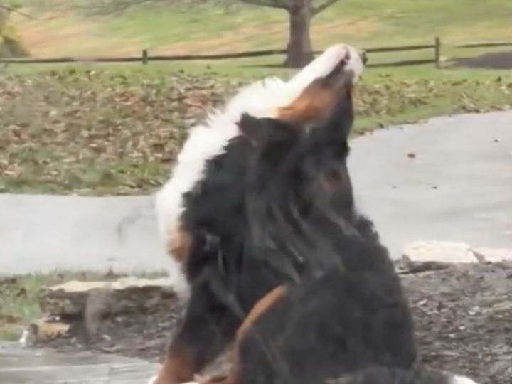 反応が無邪気でかわいすぎ! 空を見上げて雨を噛もうとする子犬