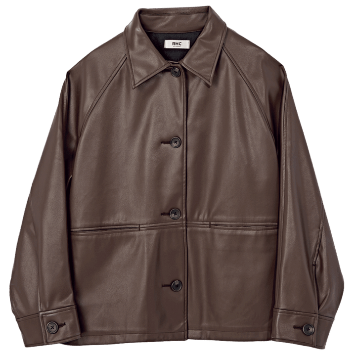 「ボクシーなシルエットが印象的なエコレザージャケットは、今季らしいブラウンが狙い目。ラグランスリーブが肩のカーブに沿うデザインで、羽織るととても可愛いんです!」RHC ロンハーマン PR・林安奈さん