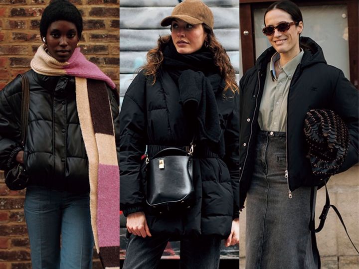 保温性があり、お手入れがしやすいと、人気急上昇中のパデッドアウター。今季は異素材の襟をあしらったものが目立っていました。