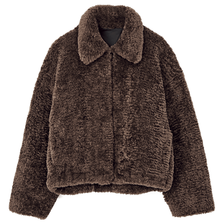 「毛の密度や質感に徹底してこだわり、ラグジュアリーかつモダンなムードに仕上げたフェイクファーブルゾン。ショート丈でコーディネートのバランスが取りやすいのも魅力です」Deuxième Classe プレス・藤本茉央さん