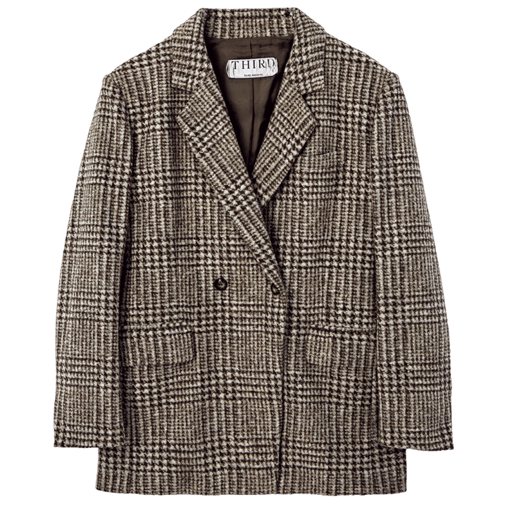 「同素材のパンツとセットアップで着たり、レースシャツで甘さをプラスしても可愛いグレンチェック柄のジャコット。個人的には、トラックパンツと合わせてスポーティに着崩したいです」THIRD MAGAZINE PR・藤田飛鳥さん