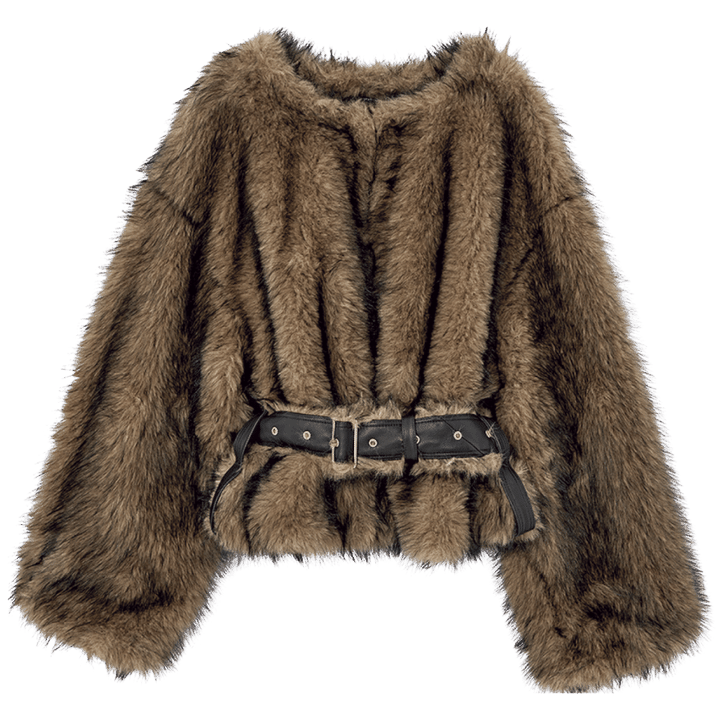 「華やかなミックスファーを使用し、存在感のあるキャッチーなファーコートを作りました。レザーとファー、リバーシブルのベルト付きで、気分に合った幅広い着こなしが楽しめますよ」styling/ チーフプレス・八木沼志乃さん