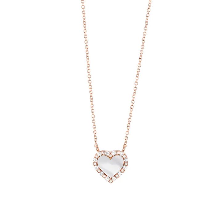 “ベル エポック”をよりフェミニンに落とし込んだのがハートモチーフのネックレス。マザーオブパールをダイヤモンドで縁取った繊細なデザインは、甘さを抑えた大人のためのネックレス。小ぶりなサイズなので、スタイリングに合わせて重ねづけしても楽しい。