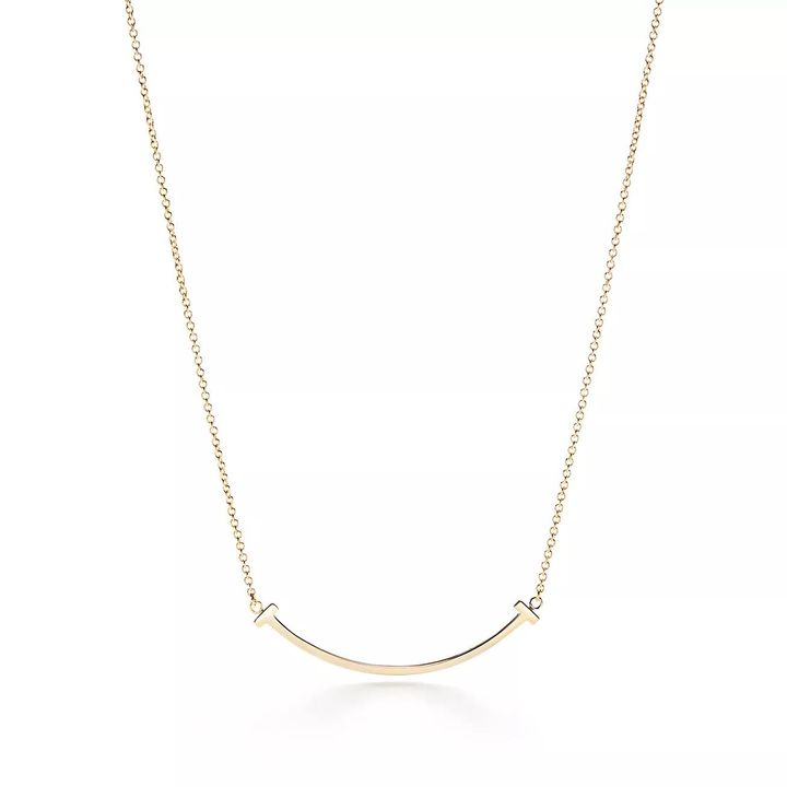 “ティファニー T”コレクションの中でも人気の“T スマイル”。やわらかな弧を描くスマイルモチーフを、ミニマルなゴールドバーで仕立てたネックレス。まとう人自身はもちろん、目にする相手までふっと笑顔にしてしまうような、ポジティブなムードを運ぶ。