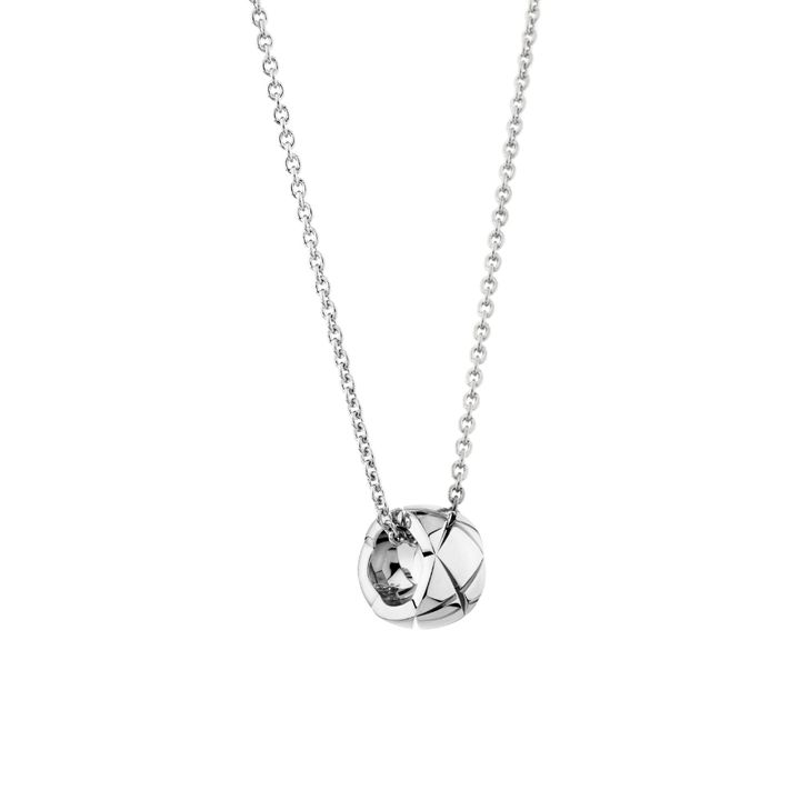 “ココ クラッシュ コレクション ネックレス”は、キルティングの立体感を小さなペンダントに凝縮。ホワイトゴールドの滑らかな輝きが肌の上でそっときらめき、控えめなサイズ感ながら装いにほどよいアクセントをもたらす。モードにもクラシックにも寄り添う懐の深さがあり、毎日でも身につけたくなるタイムレスなジュエリー。