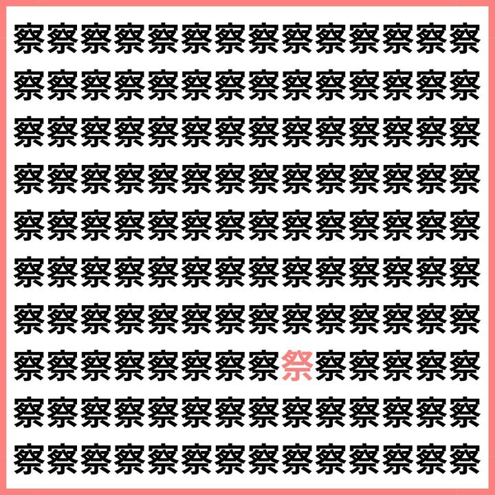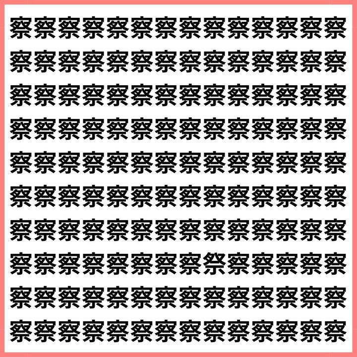 たくさんの「察」の中に、1文字だけ違う漢字が混ざっています。