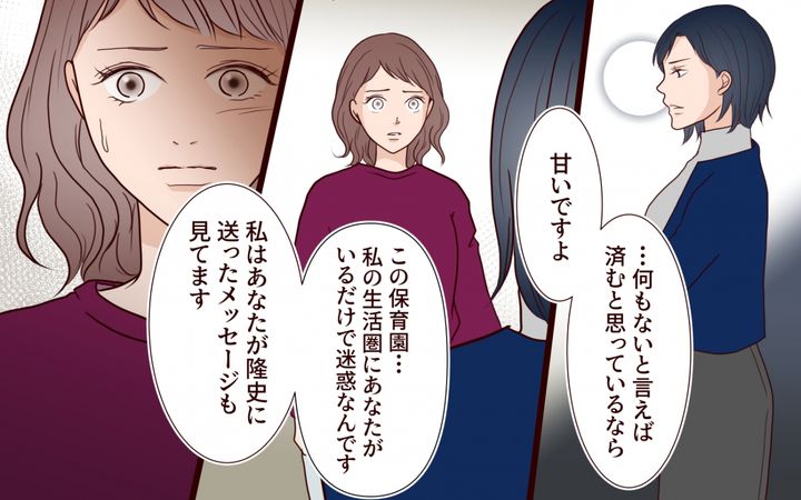 保育園で再会した元カレは、美優がかつてストーカー化するほど追いかけた相手だった。しかし今となっては思い出したくない黒歴史。それなのに彼がやたらと距離を詰めてくるので美優は迷惑していた。そんななか、彼の妻から声をかけられて…。