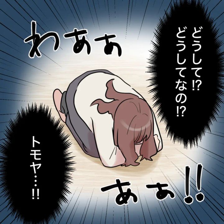 どうして!?どうしてなの!?トモヤ・・!!絶望した私は床に崩れ落ち泣き叫びました。