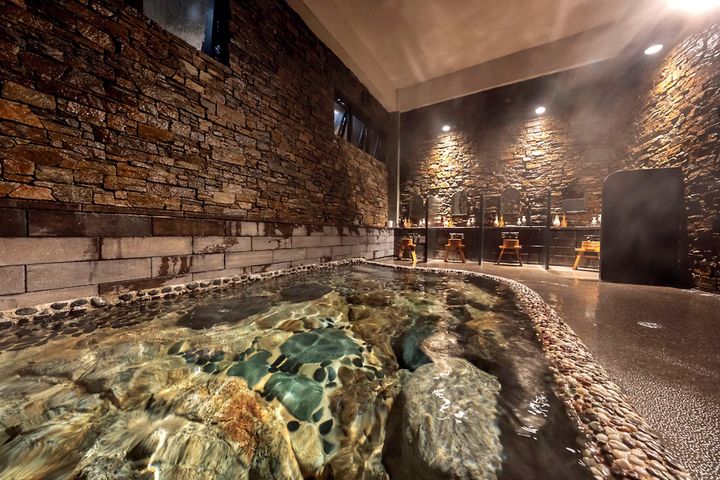 大地のミネラル溢れる炭酸水素塩泉。管理が行き届いた新鮮な源泉を掛け流しで楽しめます。成分総計は4,480mg/kgあり、二酸化炭素ガスも735mg含有。じんじんと染み渡り、血液が巡るような感覚で、むくみも古い角質もすっきりとリセットします。