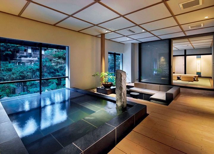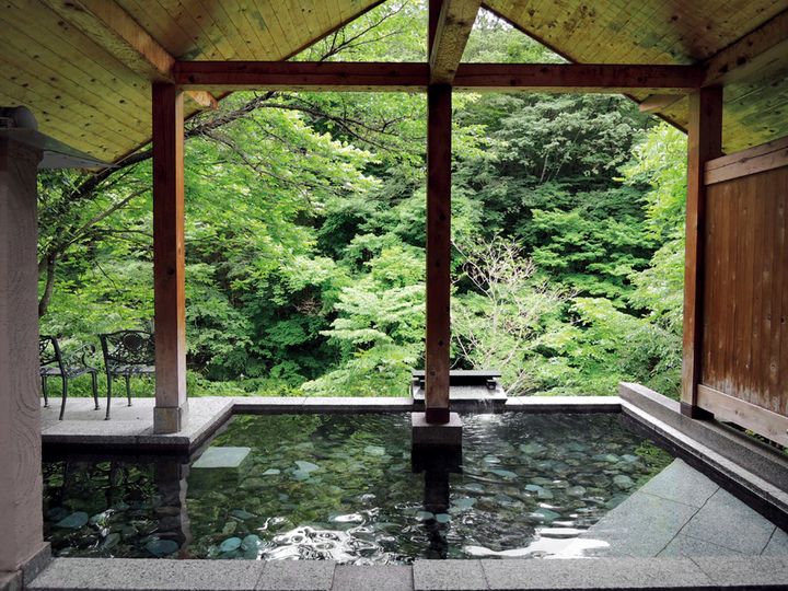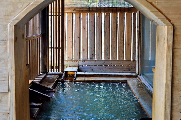 江戸時代創業の湯宿で、湯船の底から自然湧出する源泉に直接入れる内湯が魅力です。深い湯船には立って入り、全身を湯に委ねてストレスをリリース。シャワーも源泉で髪も顔も源泉の恵みを享受できます。水分でひたひたとうるおす化粧水のような湯です。