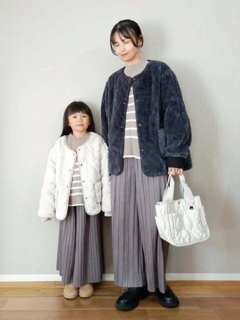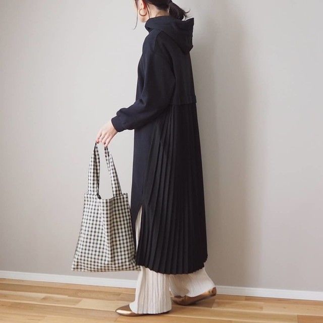 【プリーツパンツの冬コーデ2】ワンピース×プリーツワイドパンツの重ね着