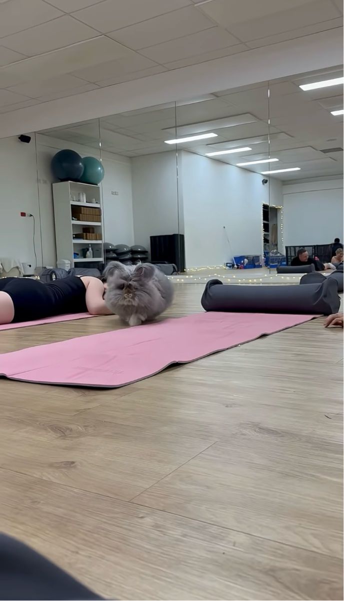 もふもふウサギもヨガがしたい?他の生徒たちに混じってヨガマットの上でスタンバイ!【海外・動画】
