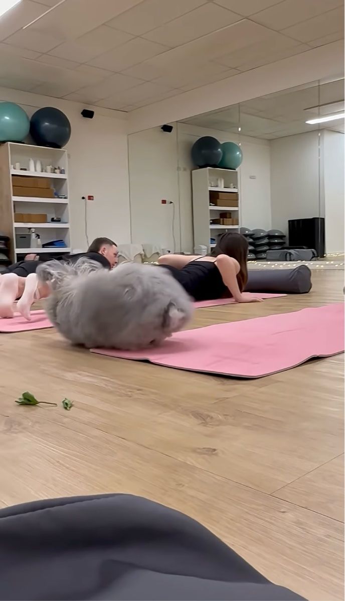 そして、周囲の人たちに合わせて、マットの上にちょこんと着席。 「一緒にヨガしたい!」と言わんばかりのその愛らしい姿に、スタジオ内には和やかな笑い声が広がります。