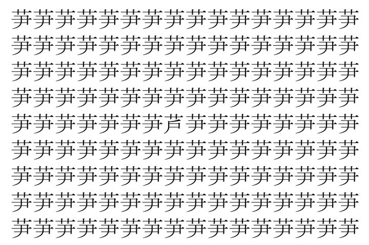 2. 【脳トレ】「芛」の中に紛れて1つ違う文字がある!?あなたは何秒で探し出せるかな??【違う文字を探せ!】