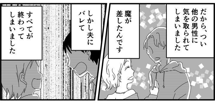 ほんの少しの心の隙間を埋めたかった私は、つい他の男性に気を取られてしまいました。魔が差したと言えばそれまででしょう。しかし夫にバレて、すべてが終わってしまったのです。