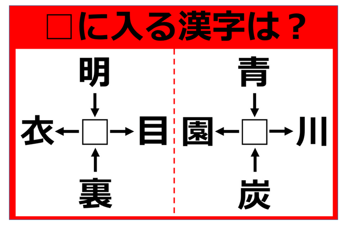 【漢字パズル】明□、□衣、裏□、□目 この□に入る漢字を当ててください!