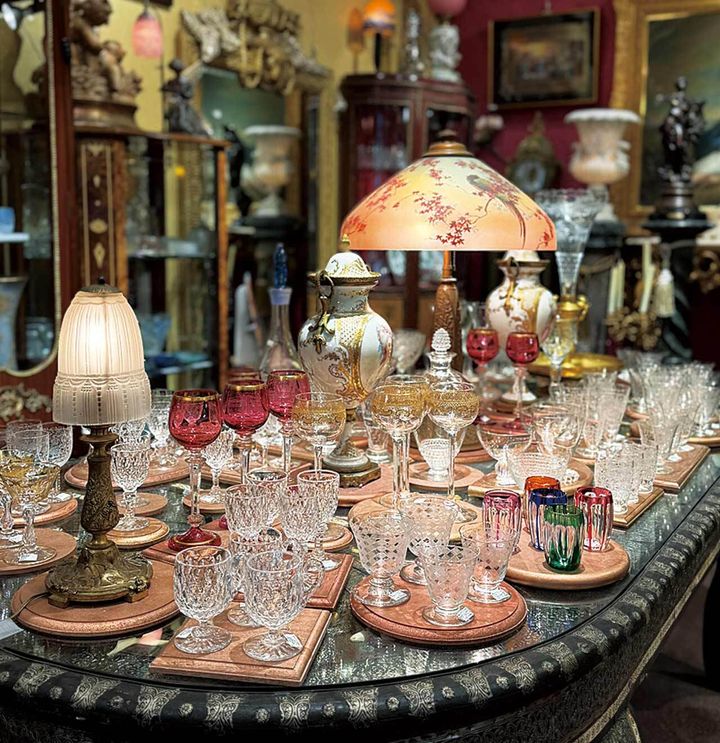 『銀座アンティーク・アイ』で年代物のジュエリーを買い、同日のホテル内ディナーに着けていくお洒落なゲストもいるとか。バカラなどのヴィンテージグラスも並ぶ