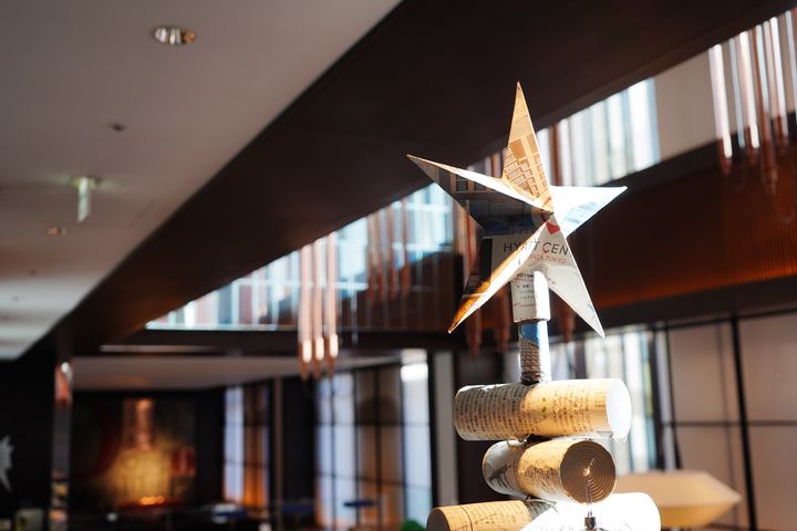 ツリーのトップには星が飾られていますが、こちらはホテルが新たな一歩を踏み出した瞬間を伝える内容がちらり。新聞紙でありながら、どこか胸を張るように輝いて見えます。