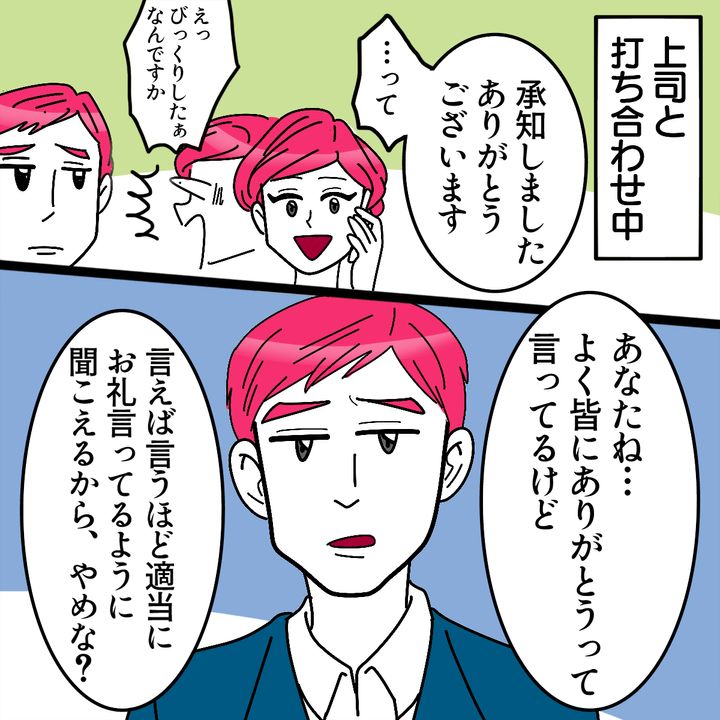 男性社員「あなたね……よくみんなに“ありがとう”って言っているけど。言えば言うほど適当にお礼を言っているように聞こえるから、やめな?