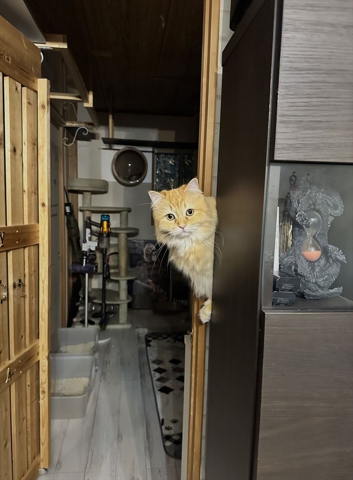 家の中で飼い主さんの目をくらませたネコ。 いないと思いきや、スッと登場した時の姿が話題になっています!
