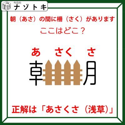 するととある東京の地名がでてくるのではないでしょうか。そうです!「あさくさ(浅草)」です!というわけで正解は「あさくさ(浅草)」でした。