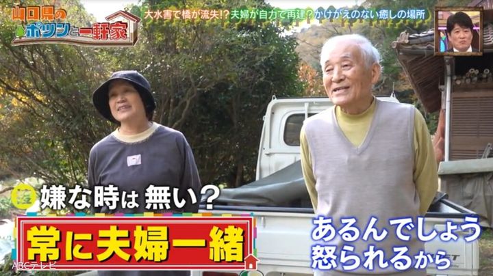 イノシシやサル、クマまでが出るという山間のポツンと一軒家は夫婦が住んでいる場所ではなく、ご主人が20歳の時に跡継ぎとして養子に入った家。36年前に義母が亡くなってからは空き家となり、麓の自宅に住む夫婦は23年前からこの場所へほぼ毎日通い、畑の手入れをしている。