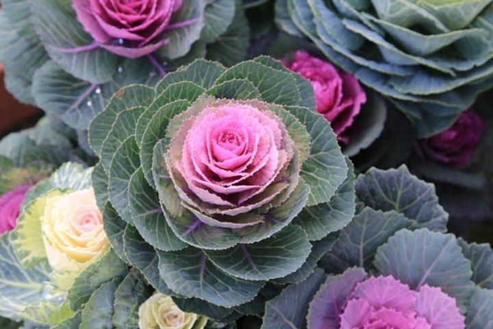 食用のケールから品種改良され、江戸時代から多彩な園芸品種が誕生。かつては株の直径30㎝ほどの大型品種が主流でしたが、近年は径10㎝ほどで茎のくねる「踊りハボタン」や、冬のバラと称される美しい葉色、シックな葉色などが人気です。冬も地植えで栽培できます。